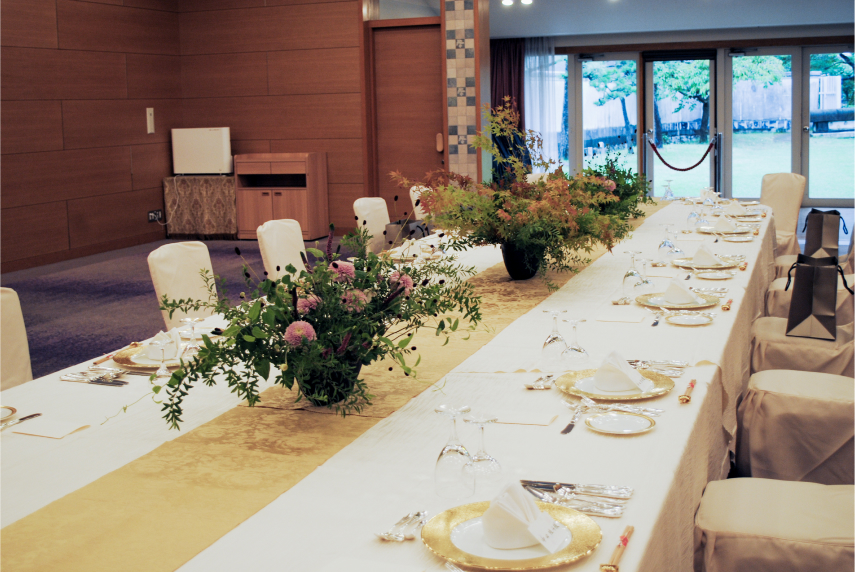 一生に一度の日だからこそ、幸せなお二人とゲストにとって特別な非日常的空間を演出。少女のような可愛らしさが印象的な甘いロマンティックスタイルから、厳かで凛とした雰囲気のフォーマルスタイルまで幅広く。お二人の思い描く「最高」を一緒に作り上げるお手伝いをいたします。